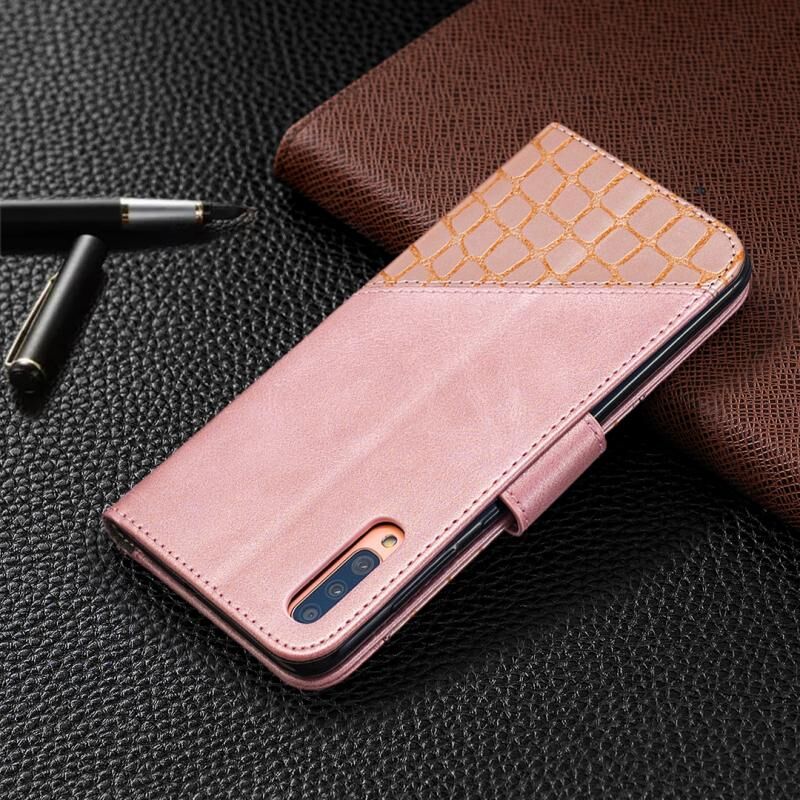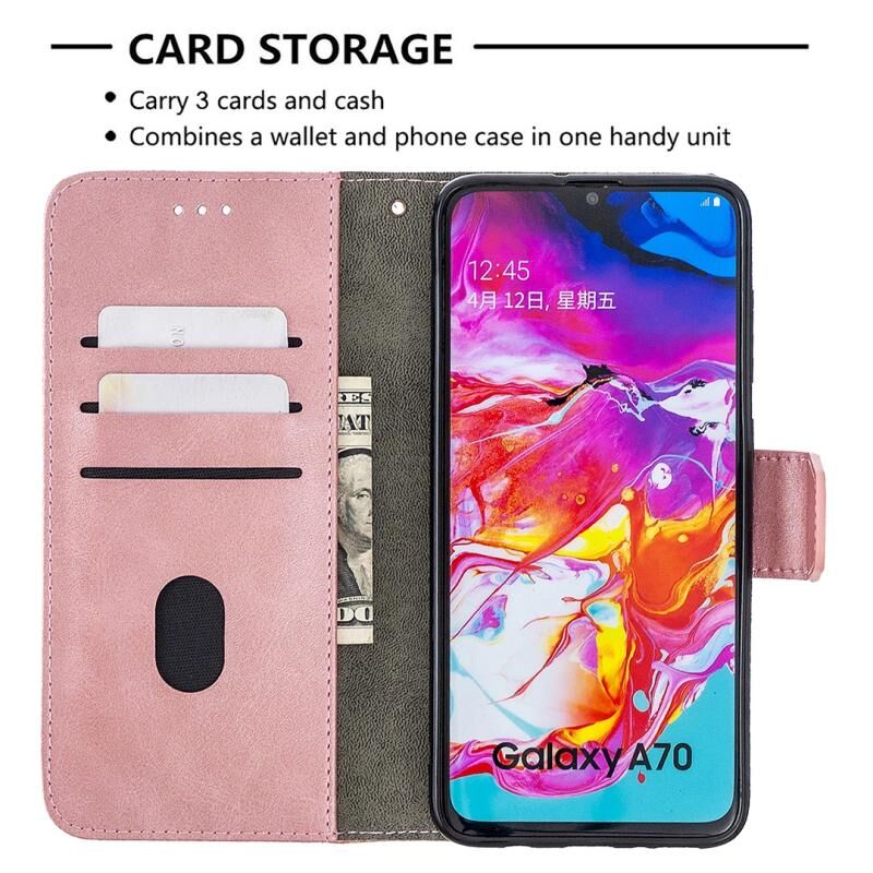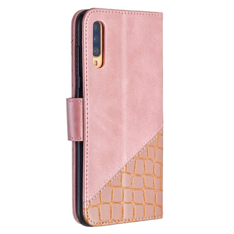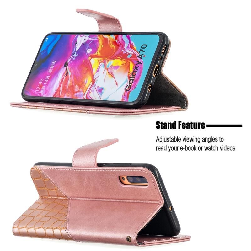 Θήκη Samsung Galaxy A70, Οριζόντια, Δερμάτινη PU με Υφή Κροκόδειλου, σε Αντίστοιχο Χρώμα, με Θήκη Πορτοφολιού, Κάτοχο & Θήκες Καρτών (Μαύρο)