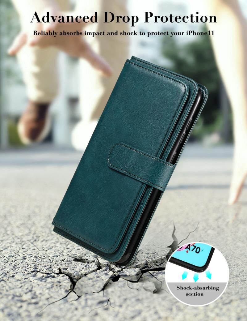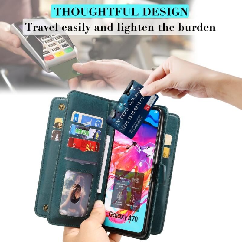 Θήκη Samsung Galaxy A70 Πολυλειτουργική Μαγνητική Θήκη με Αγκράφα από Χαλκό, Οριζόντια, Μονόχρωμη Δερμάτινη με 10 Θήκες Καρτών & Πορτοφόλι & Στήριξη & Κορνίζα Φωτογραφιών (Κρασοκόκκινο)