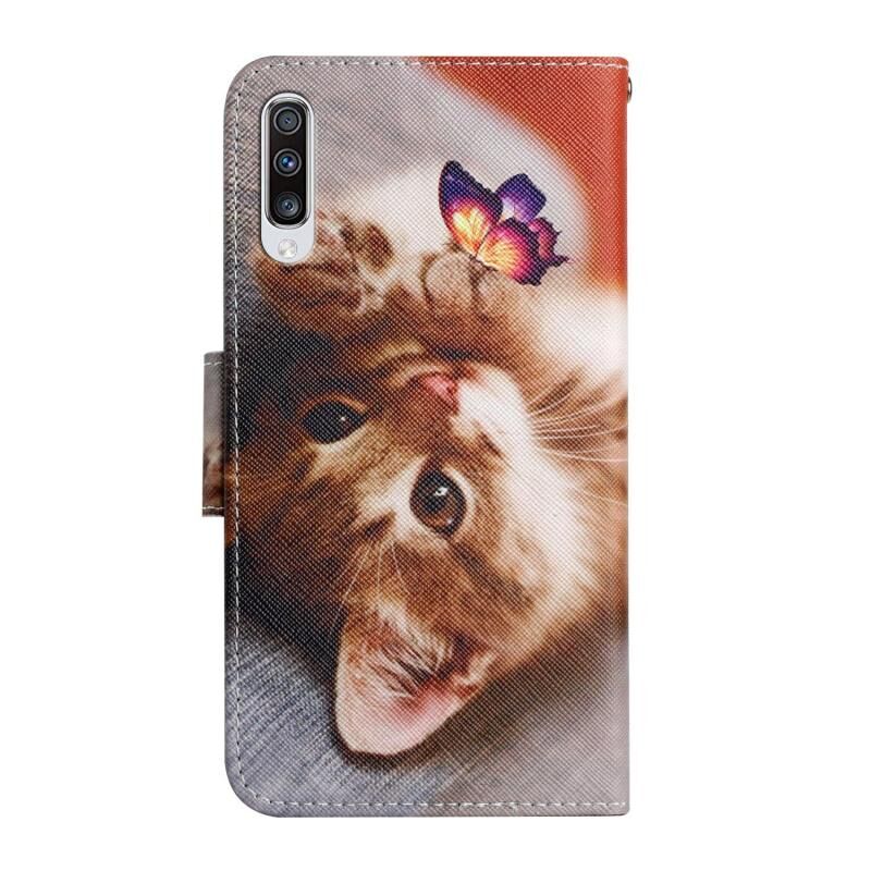 Θήκη δέρματος οριζόντιας αναδίπλωσης με σχέδιο (πεταλούδα γάτα) για Samsung Galaxy A70 με βάση & υποδοχή κάρτας & πορτοφόλι.