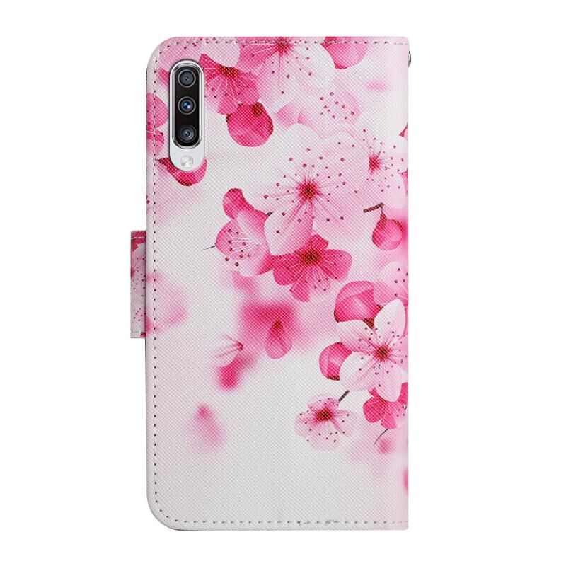Θήκη Samsung Galaxy A70 από Δέρμα με Οριζόντιο Άνοιγμα, Βαμμένο Μοτίβο, με Θήκη & Υποδοχή Κάρτας & Πορτοφόλι (Κόκκινο Λουλούδι)