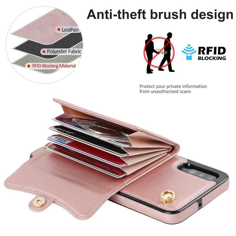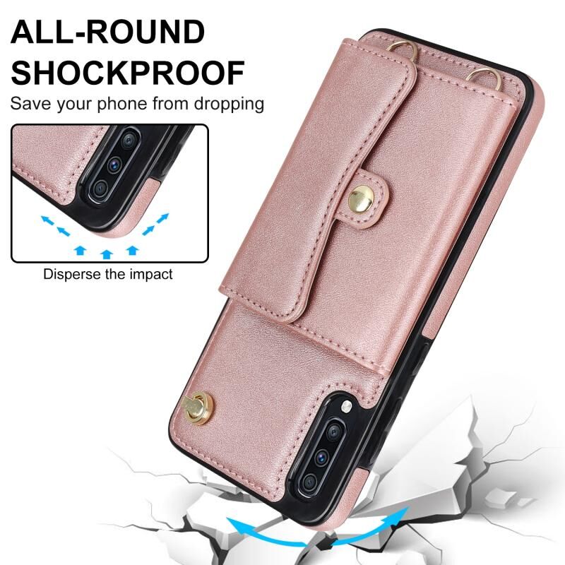 Για Samsung Galaxy A70 RFID Slot κάρτα δερμάτινη θήκη τηλεφώνου με μακρύ κορδόνι (ροζ χρυσό)