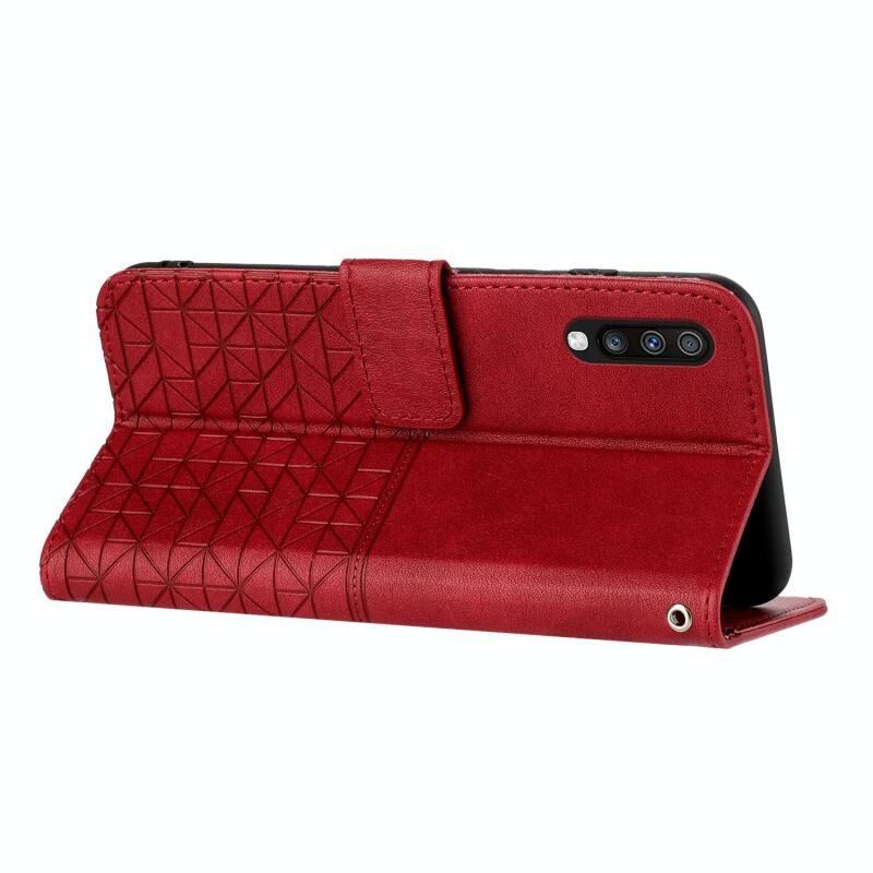 For Samsung Galaxy A70 Rhombic Texture Leather Phone Case with Lanyard(Red)