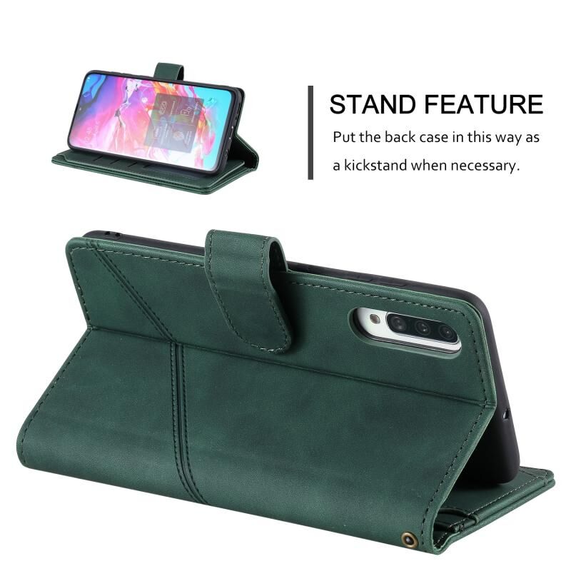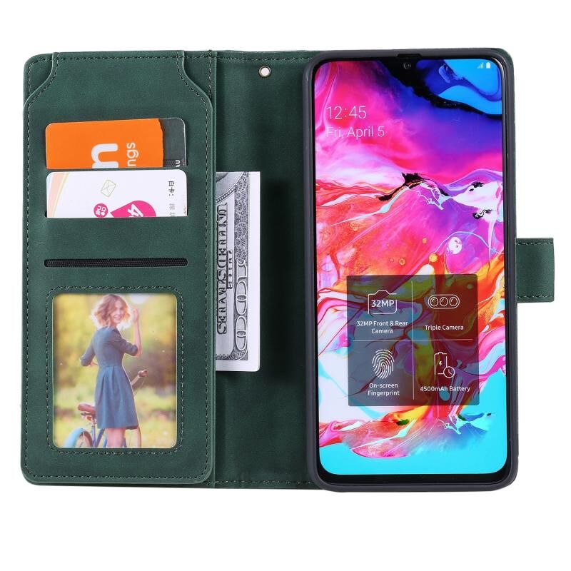 Για το Samsung Galaxy A70 Skin Feel Business Οριζόντια Flip PU δερμάτινη θήκη με θήκη & υποδοχές πολλαπλών καρτών & πορτοφόλι & κορδόνι & κορνίζα & πλαίσιο φωτογραφιών (πράσινο)