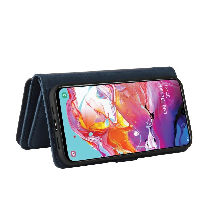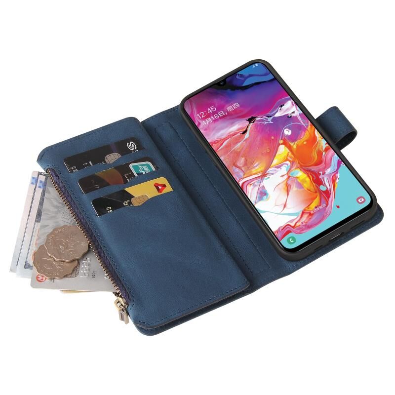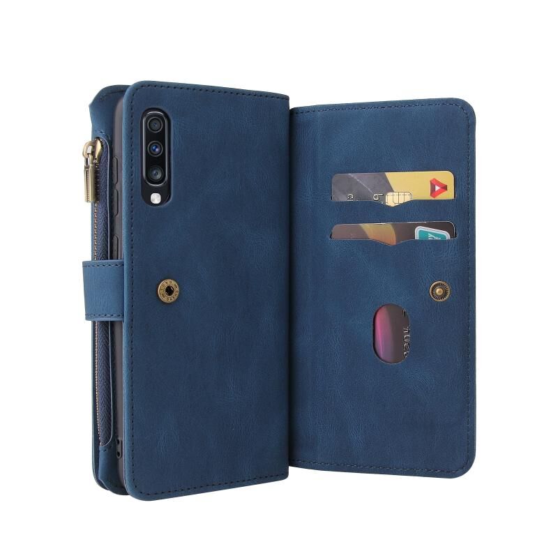Για το Samsung Galaxy A70 Skin Feel PU + TPU Οριζόντια Flip δερμάτινη θήκη με υποδοχή & 15 κάρτες Slot & πορτοφόλι & φερμουάρ τσέπη & Lanyard (μπλε)