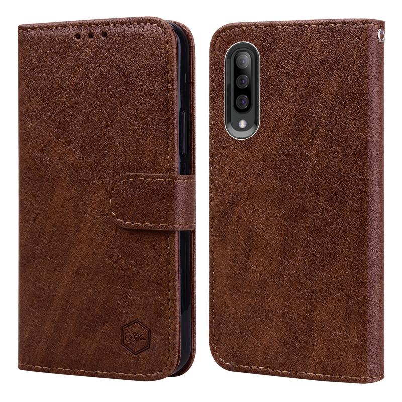 For Samsung Galaxy A70 Skin Feeling Oil Leather Texture PU + TPU Phone Case(Brown)