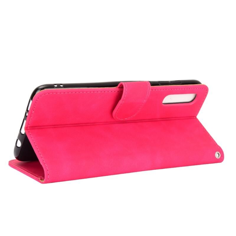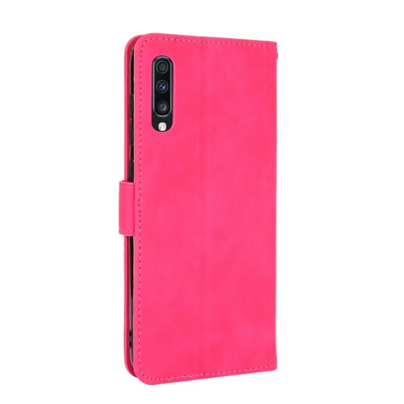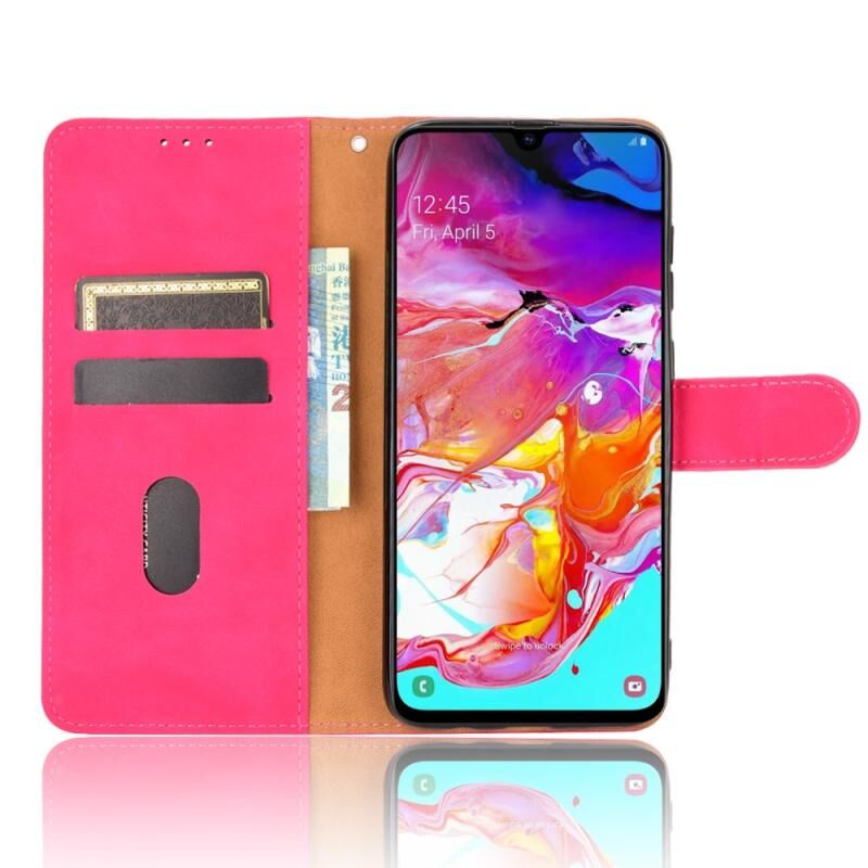 Θήκη για Samsung Galaxy A70 με υφή δέρματος μοσχαριού, μαγνητικό κούμπωμα, οριζόντιο άνοιγμα, σε μονόχρωμο χρώμα με βάση την αίσθηση του δέρματος, με θήκη, υποδοχές καρτών και πορτοφόλι (Κόκκινο Ρόδο). (Ροζέ κόκκινο)