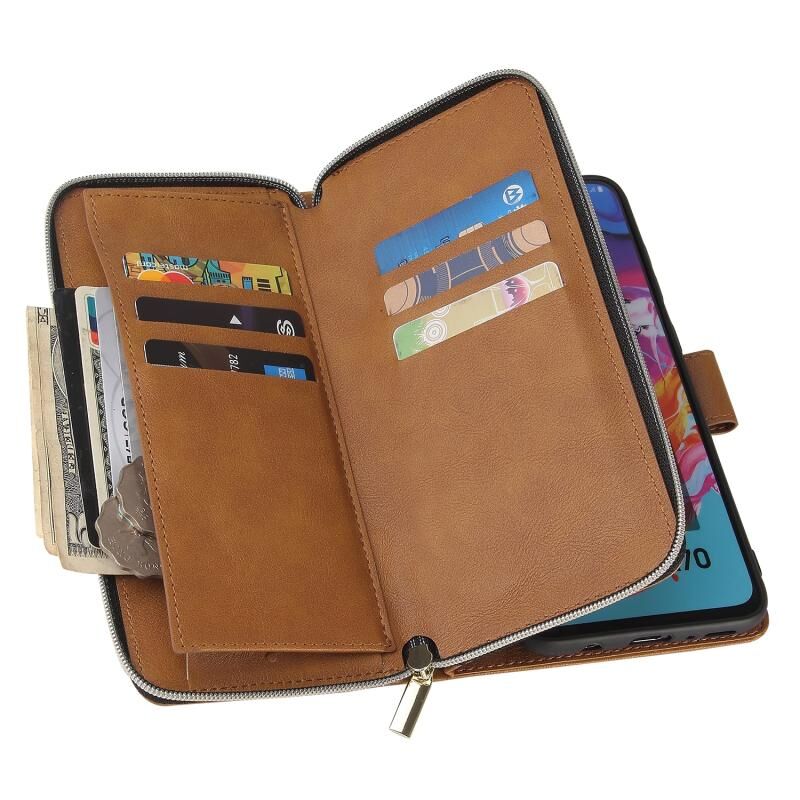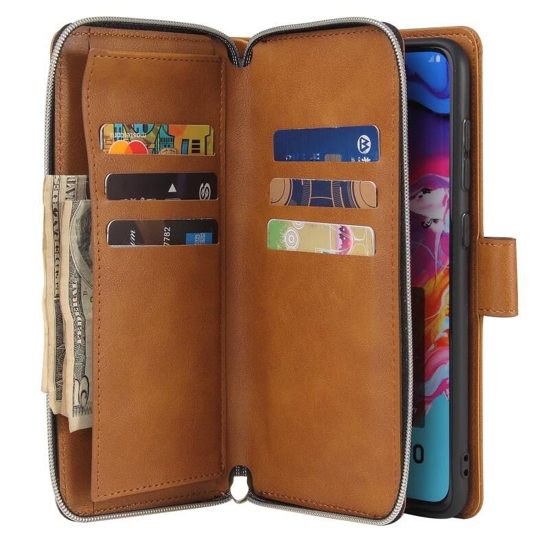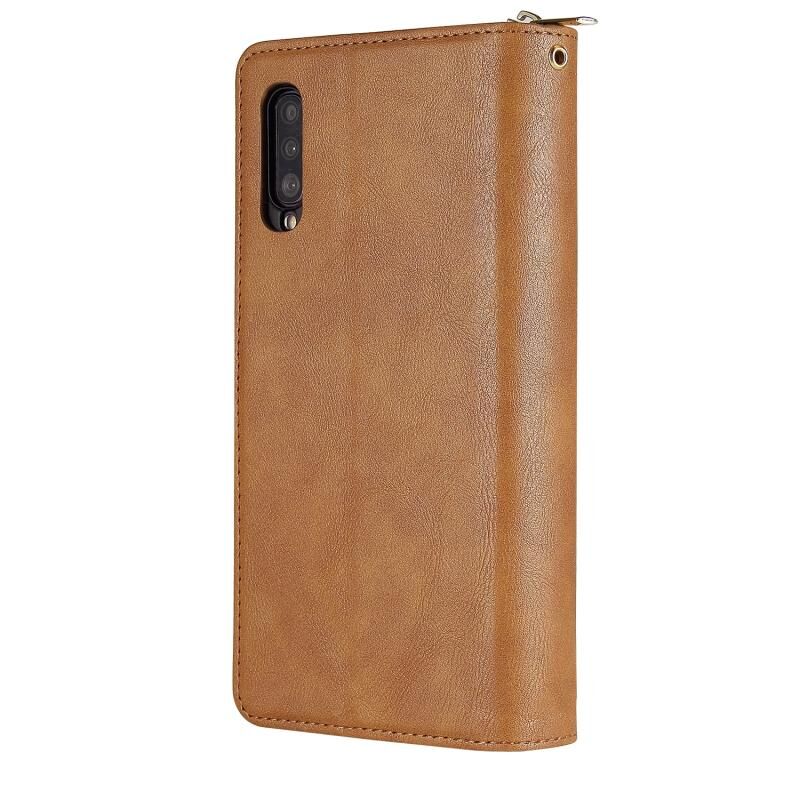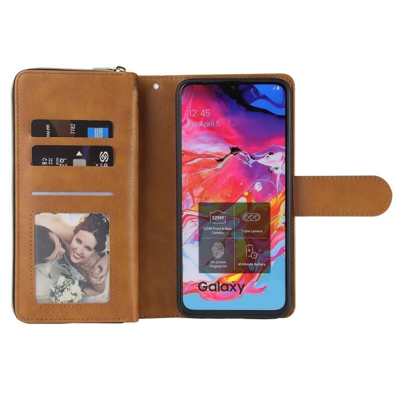 Για Samsung Galaxy A70 φερμουάρ τσάντα πορτοφόλι οριζόντια Flip PU δερμάτινη θήκη με θήκη & 9 υποδοχές για κάρτες & πορτοφόλι & κορδόνι & κορνίζα φωτογραφιών (καφέ)