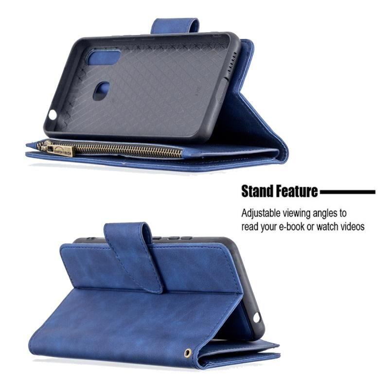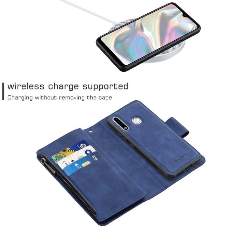 Για Samsung Galaxy A70e Skin Feel Αποσπώμενο μαγνητικό φερμουάρ Οριζόντια Flip PU δερμάτινη θήκη με υποδοχές για πολλαπλές κάρτες & θήκη & πορτοφόλι & κορνίζα φωτογραφιών & κορδόνι (μπλε)
