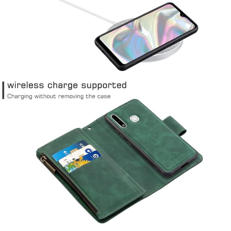 Για Samsung Galaxy A70e Skin Feel Αποσπώμενο μαγνητικό φερμουάρ Οριζόντια Flip PU δερμάτινη θήκη με υποδοχές για πολλαπλές κάρτες & θήκη & πορτοφόλι & κορνίζα & κορδόνι (πράσινο)