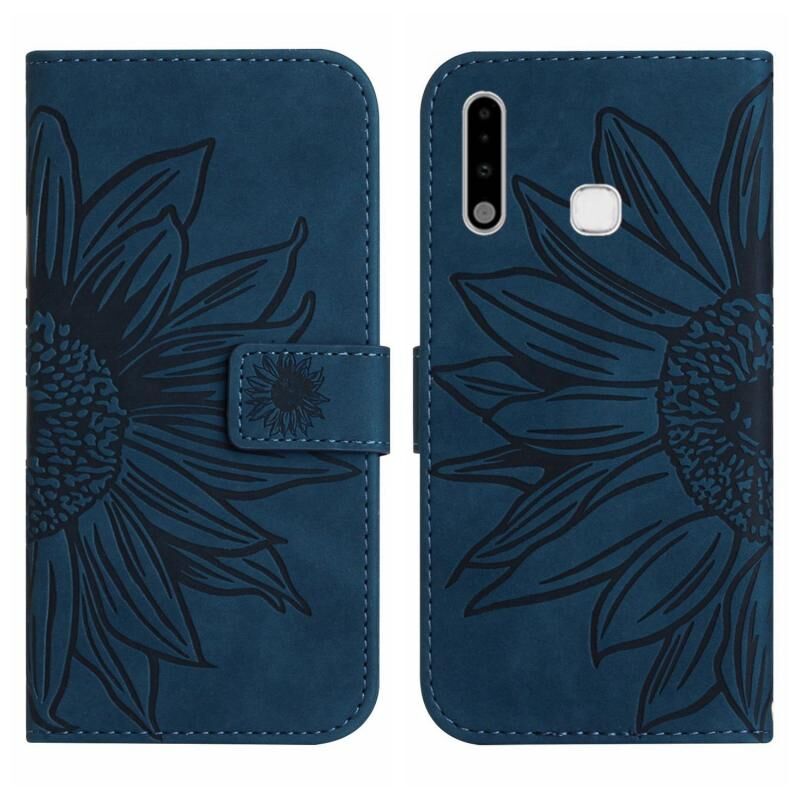 Για το Samsung Galaxy A70E δέρμα αίσθηση Sun Flower μοτίβο Flip δέρμα υπόθεση τηλεφώνου με κορδόνι (Inky Blue)