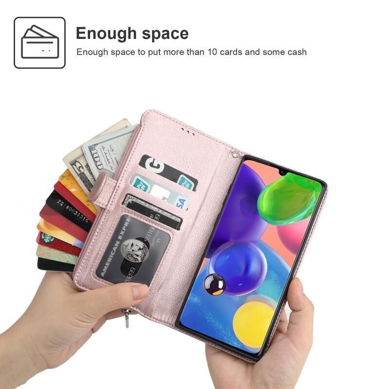Για Samsung Galaxy A70s Microfiber φερμουάρ οριζόντια Flip δερμάτινη θήκη (Rose Gold)