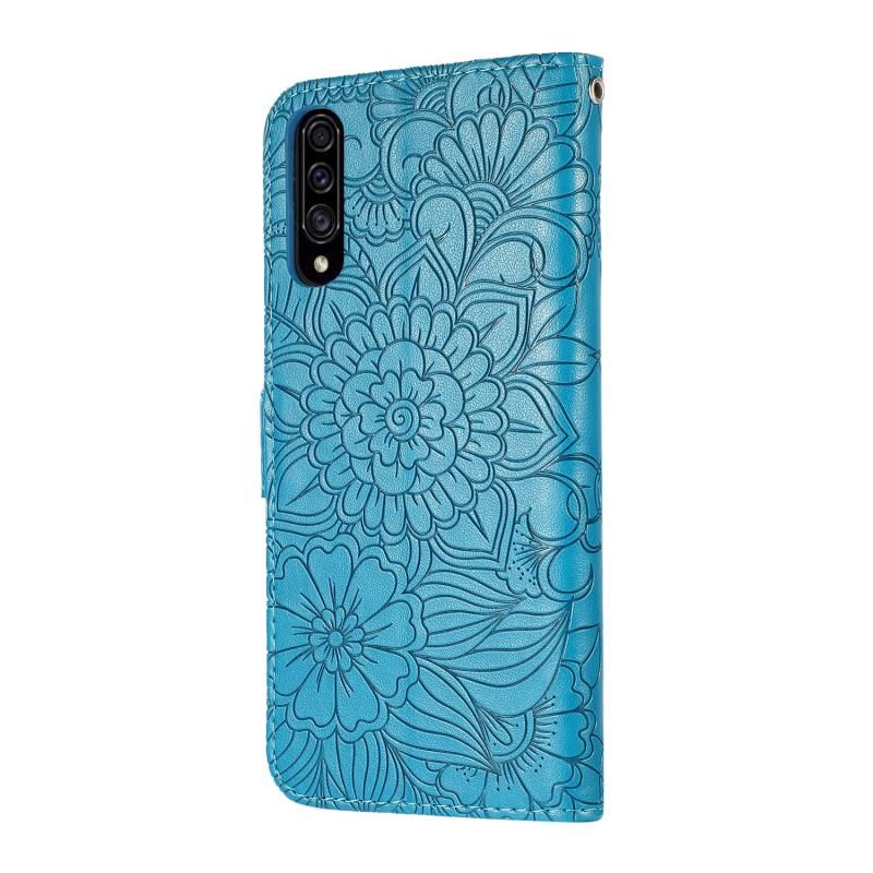 Για Samsung Galaxy A70s δέρμα αίσθηση ανάγλυφο ηλιοτρόπιο οριζόντια Flip δερμάτινη θήκη με κάτοχο & υποδοχές για κάρτες & πορτοφόλι & κορδόνι (μπλε)