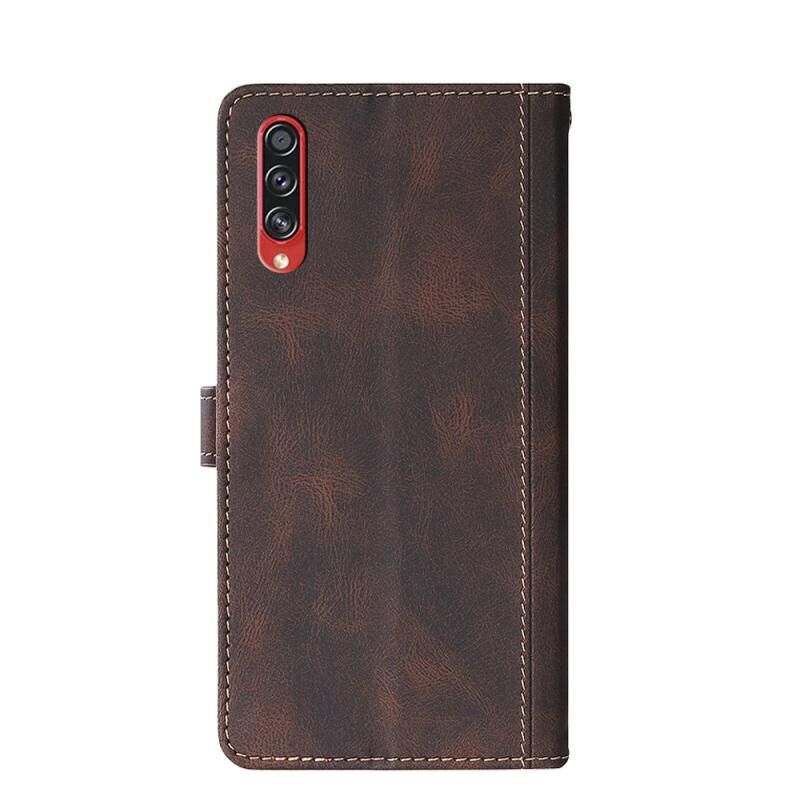 Για το Samsung Galaxy A70s Stitching δέρμα αίσθηση μαγνητική πόρπη οριζόντια Flip PU δέρμα υπόθεση με κάτοχο & υποδοχές για κάρτες & πορτοφόλι (καφέ)