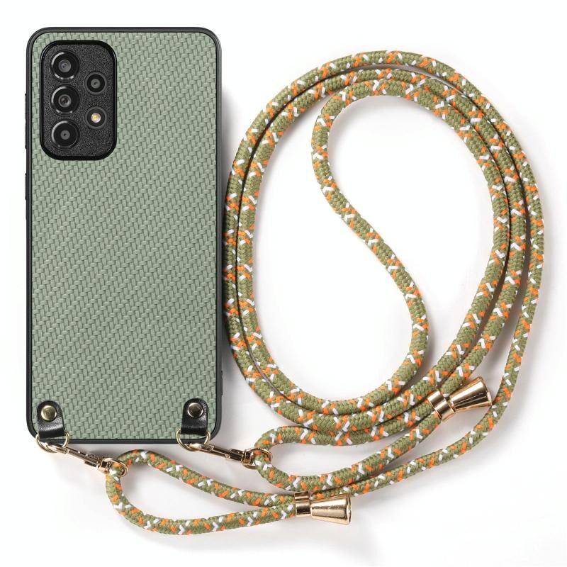 Για Samsung Galaxy A71 4G Carbon Fiber Texture δέρμα πίσω κάλυμμα τηλέφωνο υπόθεση με λουράκι σταυρού (πράσινο)