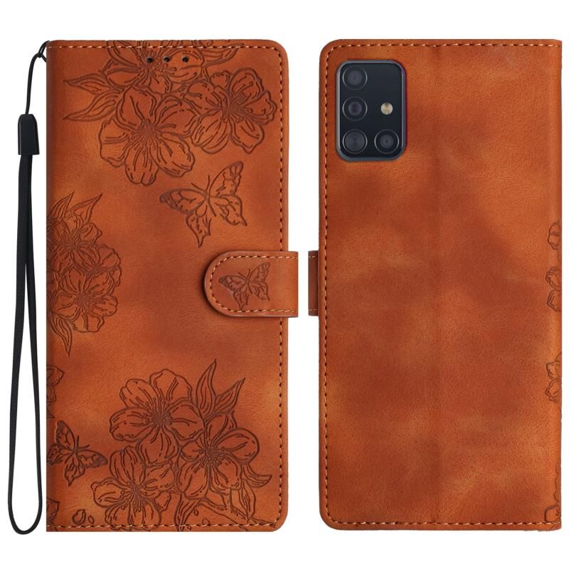 Θήκη τηλεφώνου Samsung Galaxy A71 4G Cherry Blossom Butterfly με ανάγλυφο PU υλικό (Κόκκινο)
