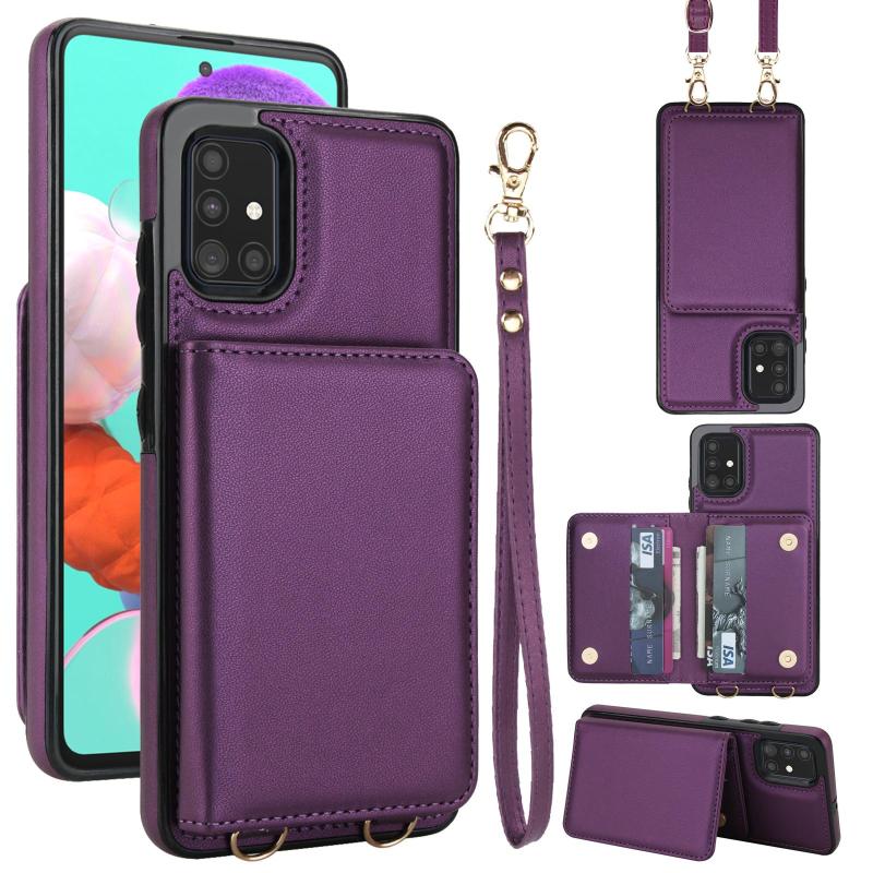For Samsung Galaxy A71 4G Crossbody Dual-buckle Wallet RFID Back Leather Phone Case(Dark Purple)