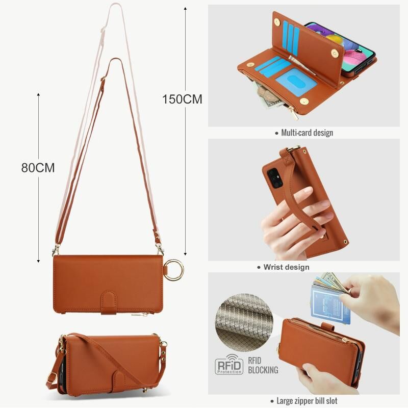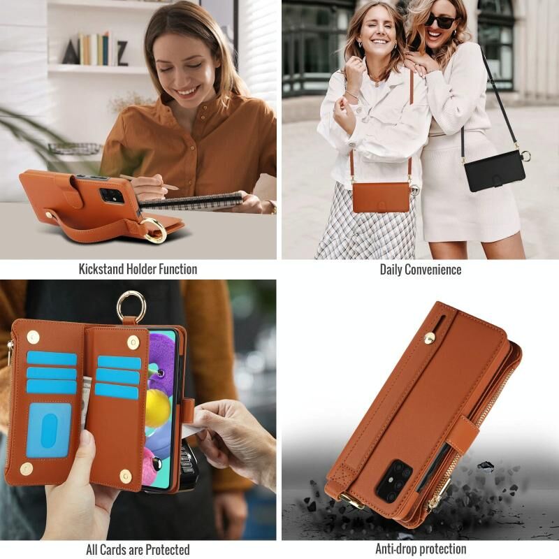 Για Samsung Galaxy A71 4G Δαχτυλίδι Crossbody Πολυλειτουργική θήκη τηλεφώνου Πορτοφόλι Δερμάτινη(Καφέ)