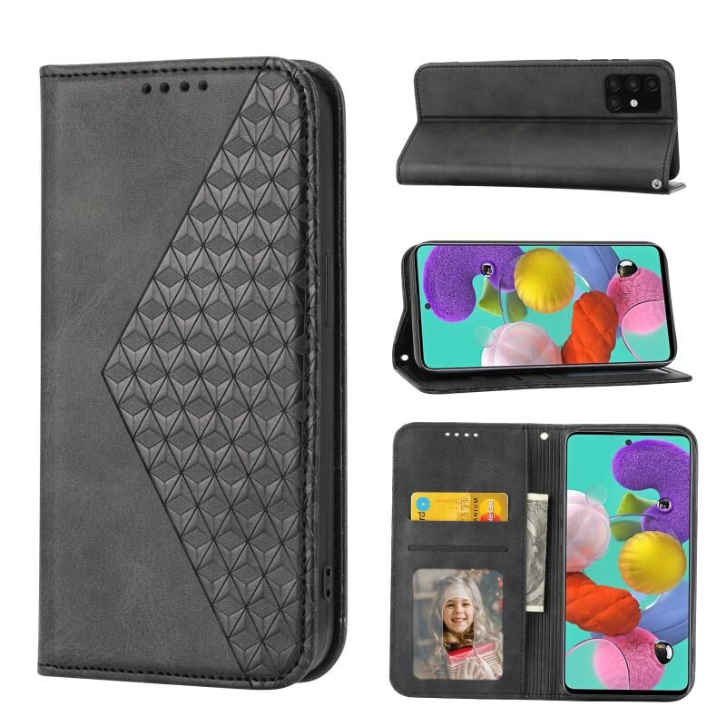 Για Samsung Galaxy A71 4G Cubic Grid Calf υφή μαγνητικό κλείσιμο δερμάτινη θήκη τηλεφώνου (μαύρο)