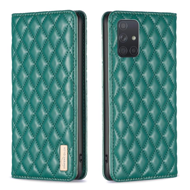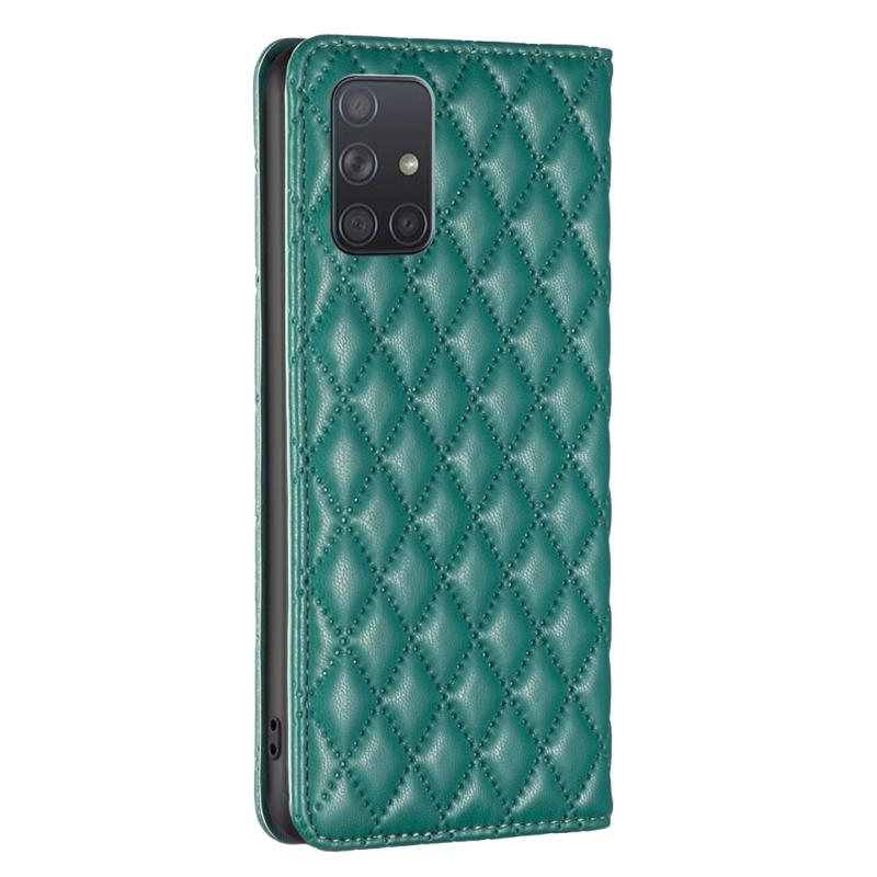 Θήκη τηλεφώνου Samsung Galaxy A71 4G, Δερμάτινη, Πτυσσόμενη, με Μαγνητικό Κλείσιμο και Διαμαντένιο Πλέγμα (Μαύρο)