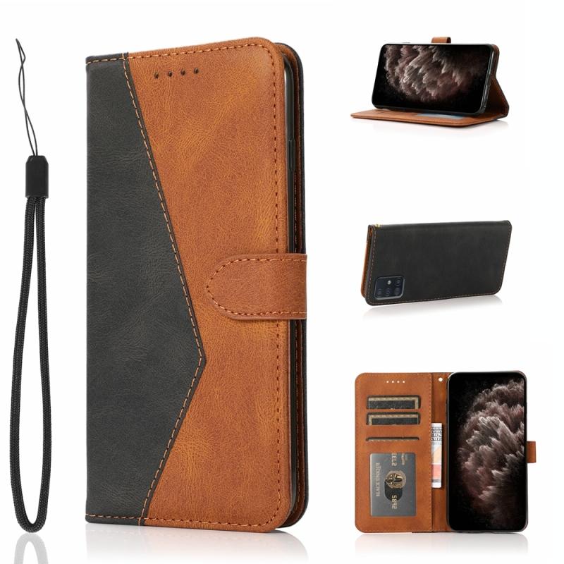 Θήκη τηλεφώνου δερμάτινη με διχρωμία ραφής για Samsung Galaxy A71 4G (Μαύρο καφέ)