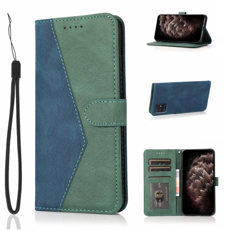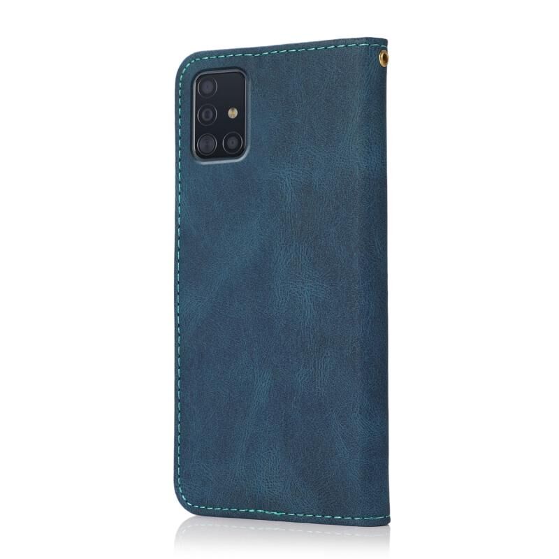 Θήκη τηλεφώνου δερμάτινη με διχρωμία ραφής για Samsung Galaxy A71 4G (Μπλε πράσινο)