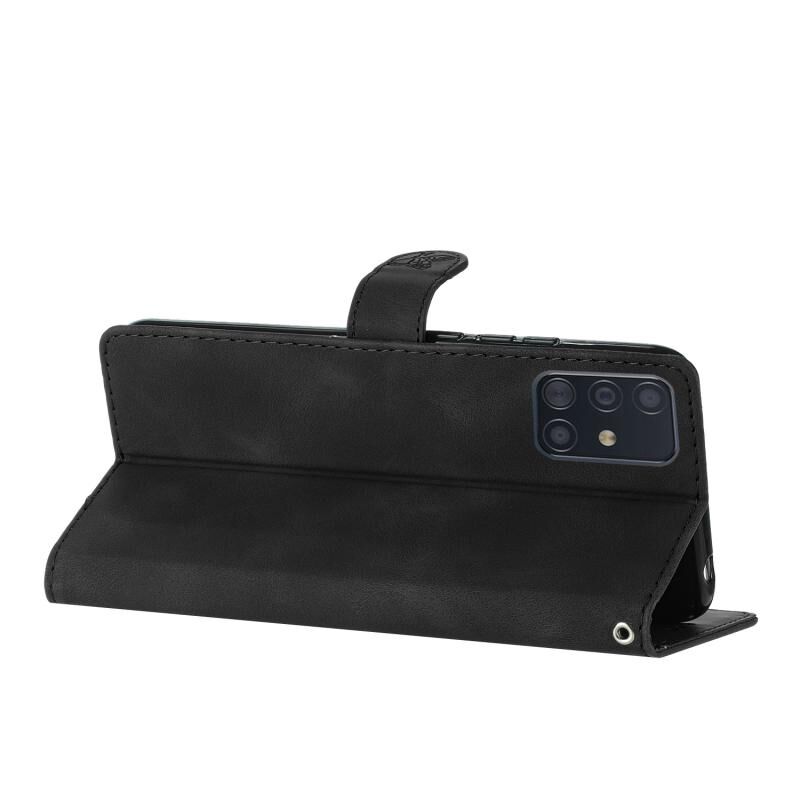 Για Samsung Galaxy A71 4G λουλούδι πεταλούδα ανάγλυφο μοτίβο δερμάτινη θήκη τηλεφώνου (μαύρο)