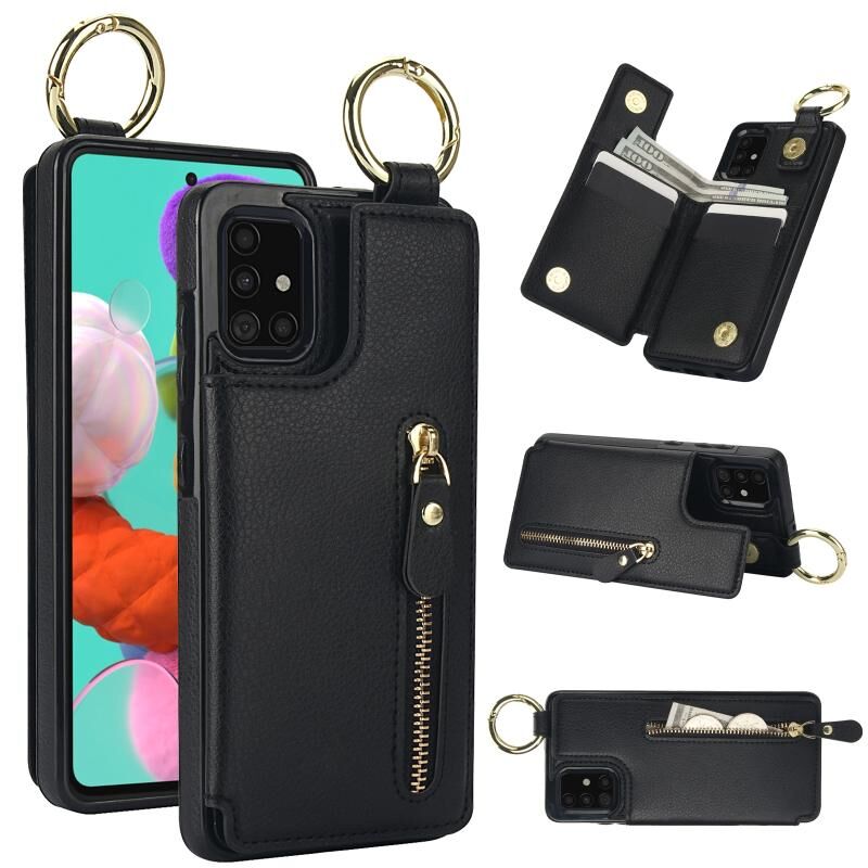 Για Samsung Galaxy A71 4G Litchi υφή φερμουάρ διπλή πόρπη κάρτα τσάντα υπόθεση τηλεφώνου (Μαύρο)