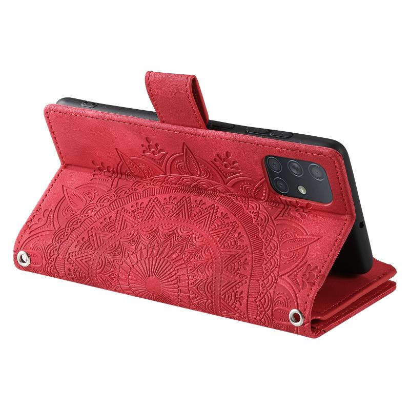 For Samsung Galaxy A71 4G Multi-Card Totem Zipper Leather Phone Case(Red)