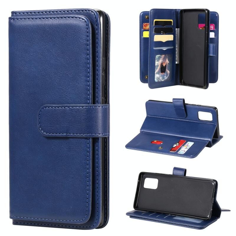Για Samsung Galaxy A71 (4G) Πολυλειτουργική μαγνητική χάλκινη πόρπη οριζόντια Flip Solid Color δερμάτινη θήκη με 10 υποδοχές για κάρτες & πορτοφόλι & θήκη & κορνίζα φωτογραφιών (σκούρο μπλε)