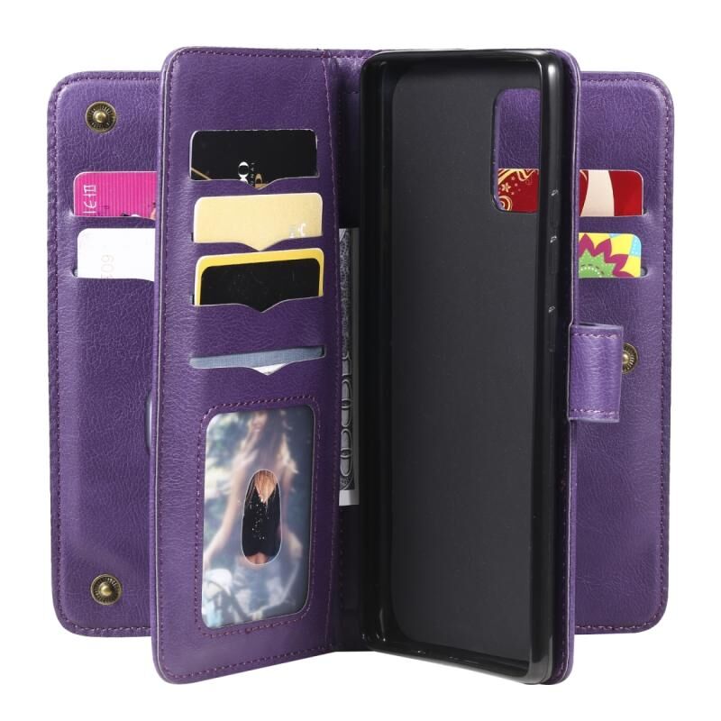 Για Samsung Galaxy A71 (4G) Πολυλειτουργική μαγνητική χάλκινη πόρπη οριζόντια Flip Solid Color δερμάτινη θήκη με 10 υποδοχές για κάρτες & πορτοφόλι & θήκη & κορνίζα φωτογραφιών (μωβ)