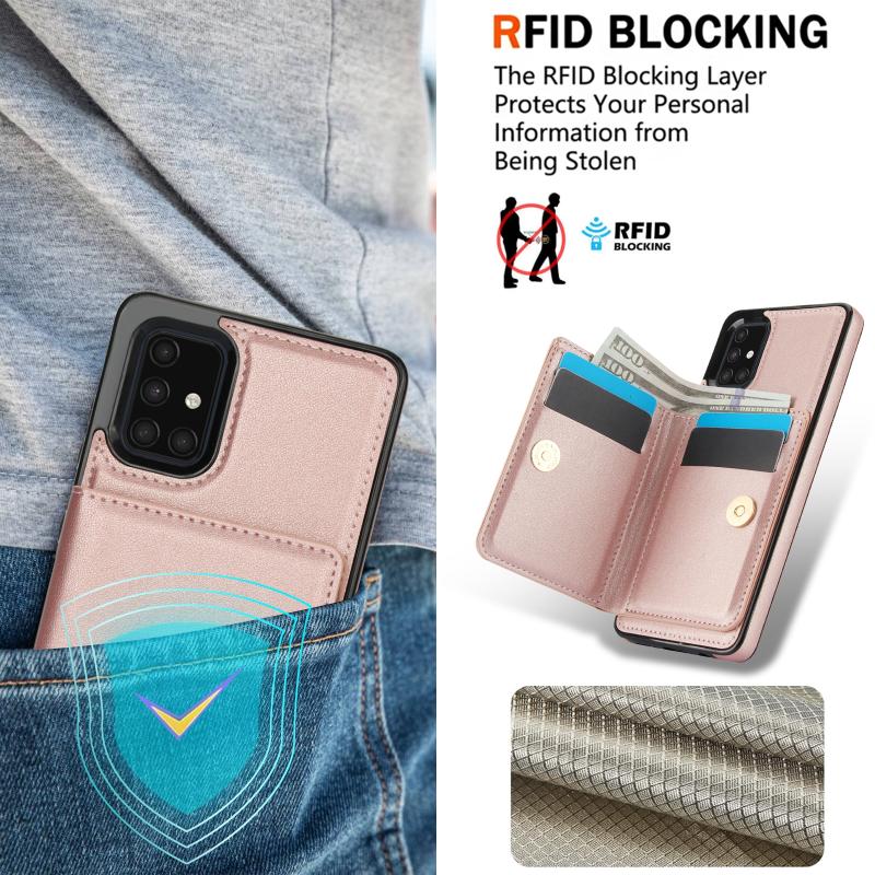 For Samsung Galaxy A71 4G RFID Anti-theft Card Ring Holder Phone Case(Rose Gold)