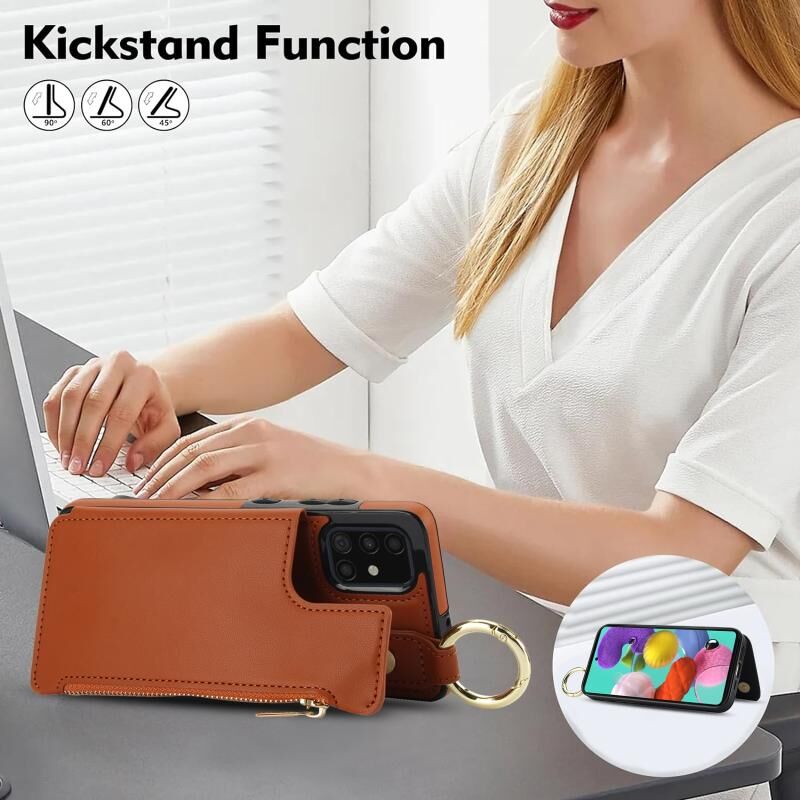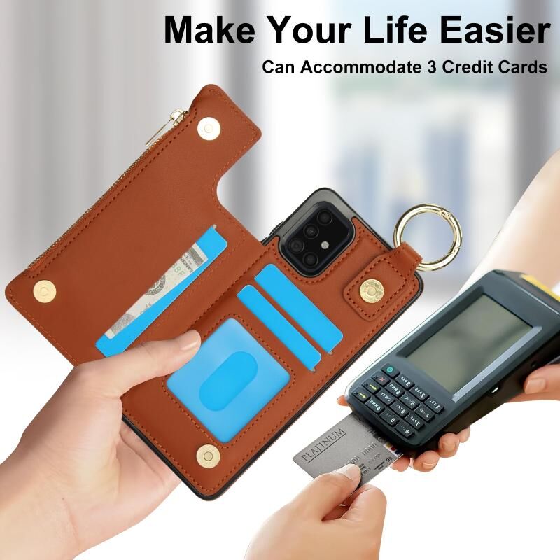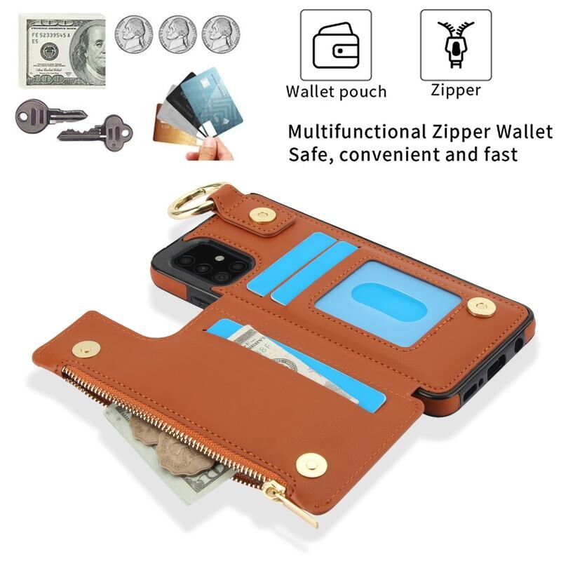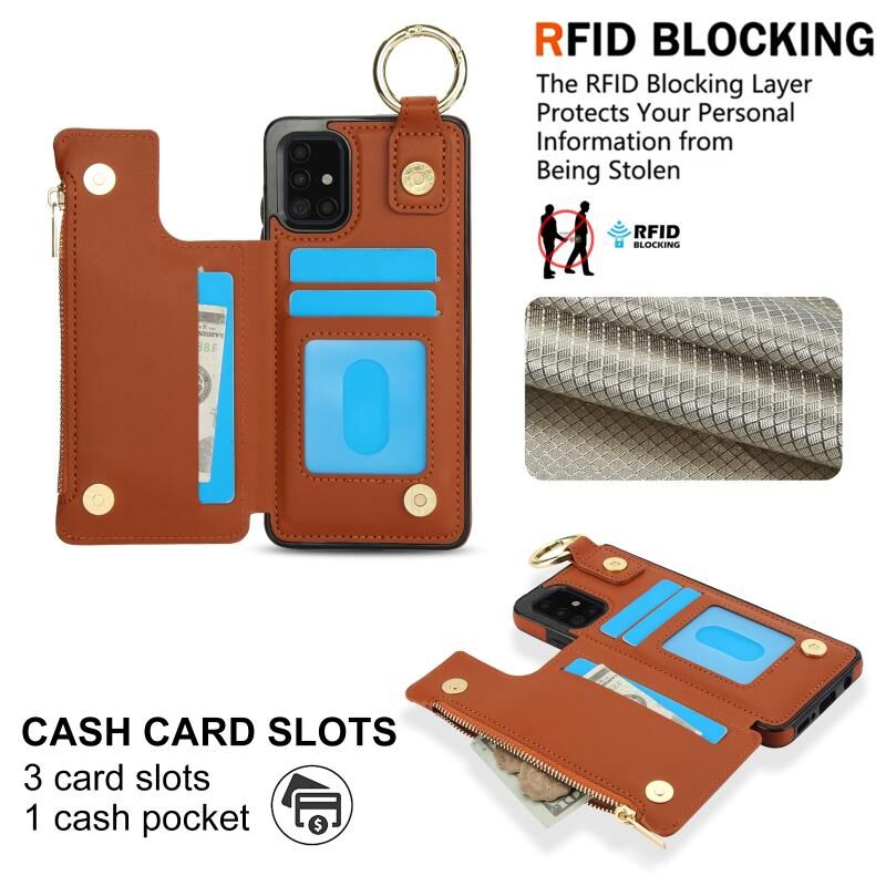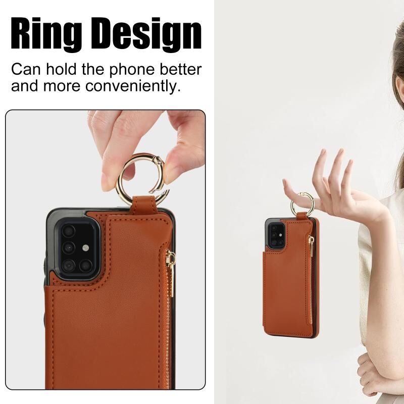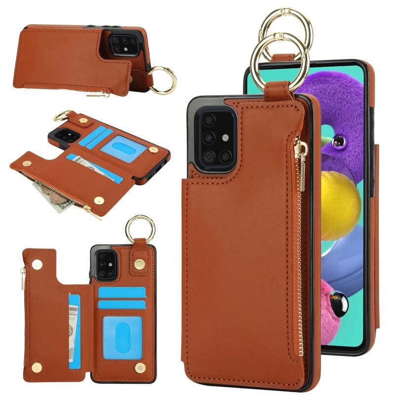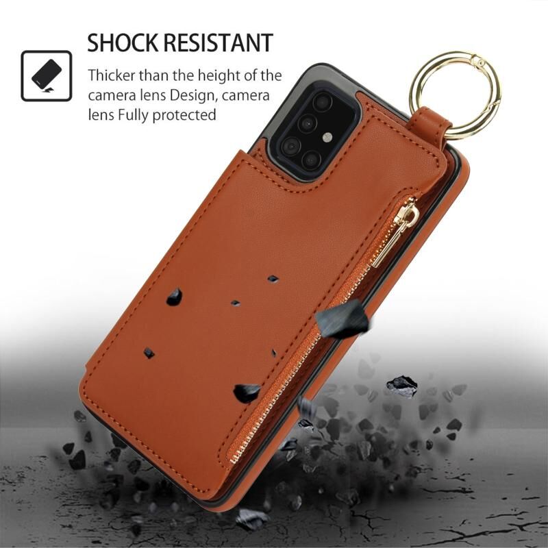 Για Samsung Galaxy A71 4G RFlD Anti-theft Διπλό πόρπη δαχτυλίδι φερμουάρ κάρτα υπόθεση τηλεφώνου (καφέ)