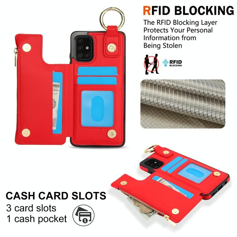 Για Samsung Galaxy A71 4G RFlD Anti-theft Διπλό πόρπη δαχτυλίδι φερμουάρ κάρτα υπόθεση τηλεφώνου (κόκκινο)
