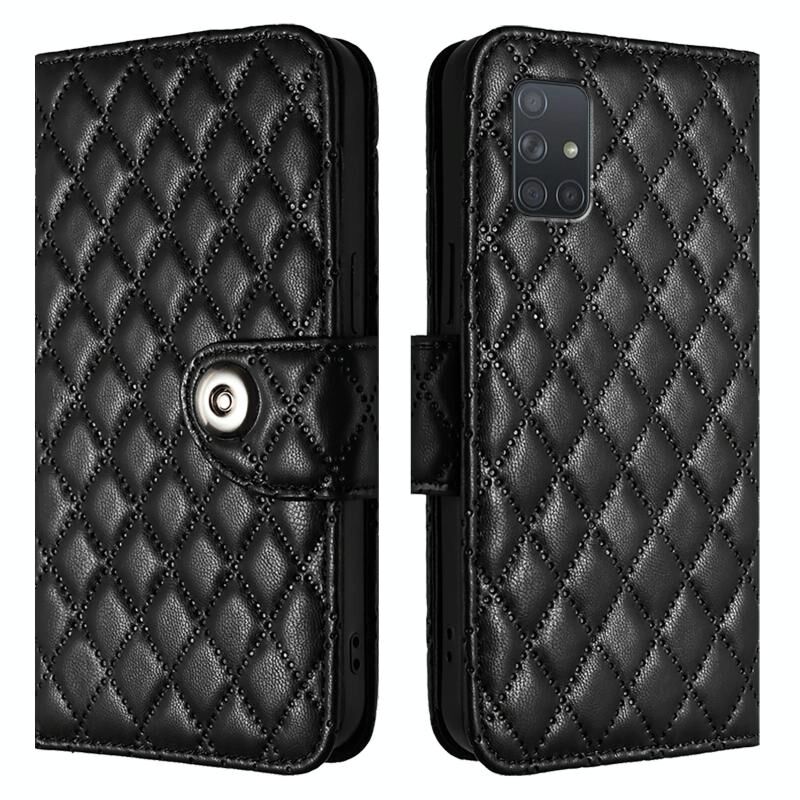 Για Samsung Galaxy A71 4G Rhombic Texture Flip δερμάτινη θήκη τηλεφώνου με κορδόνι (μαύρο)
