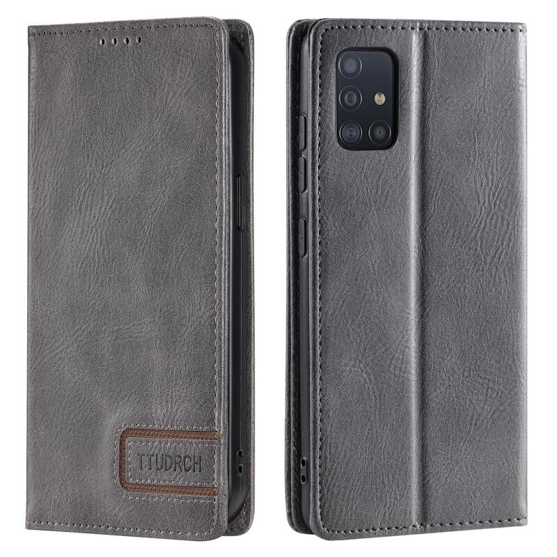 Θήκη τηλεφώνου Samsung Galaxy A71 4G TTUDRCH RFID με μαγνητικό δέρμα και ανάγλυφη υφή (Γκρι)