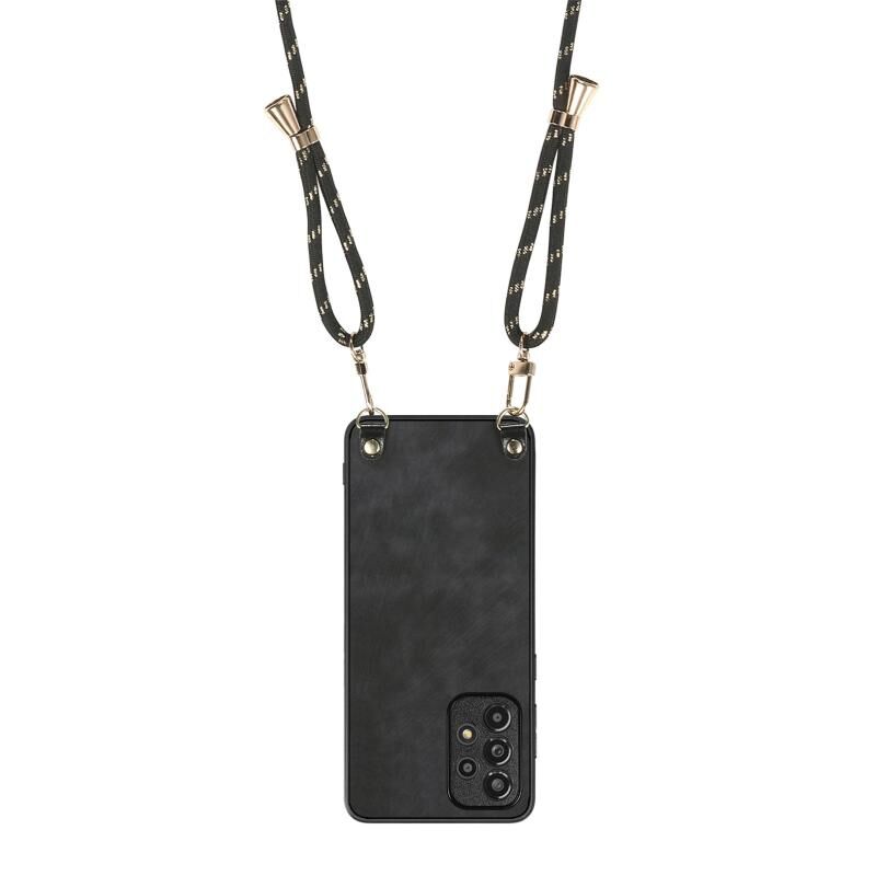 Για Samsung Galaxy A71 4G εκλεκτής ποιότητας δέρμα PC πίσω κάλυμμα τηλέφωνο υπόθεση με λουράκι σταυρού (μαύρο)