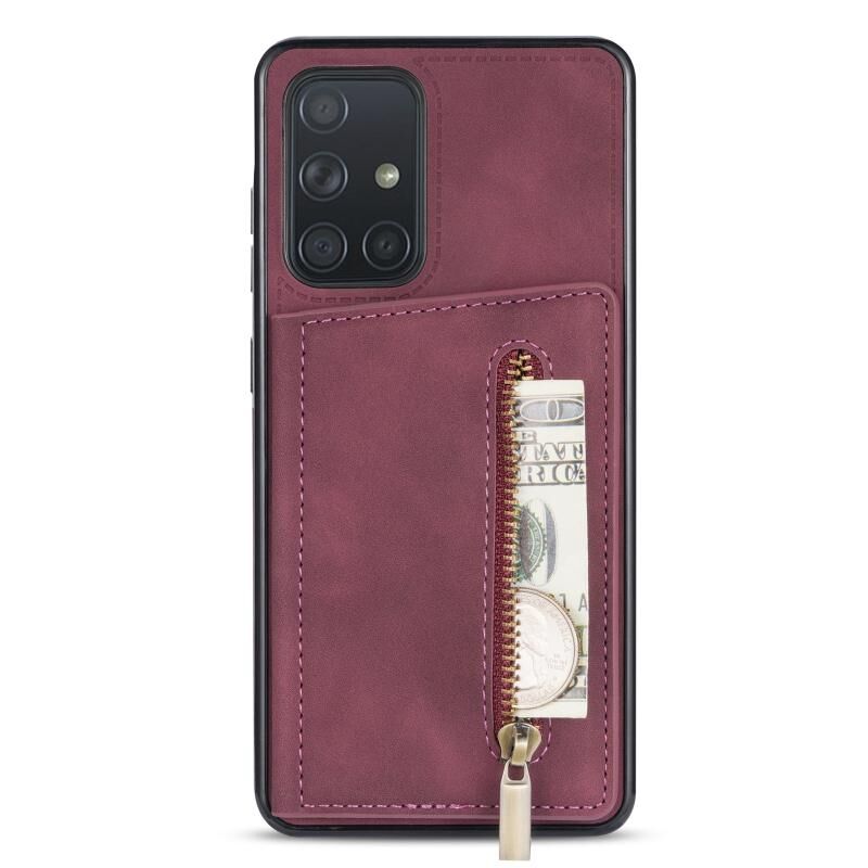 Θήκη κινητού τηλεφώνου με φερμουάρ και θήκη καρτών για Samsung Galaxy A71 4G (Μαύρο)