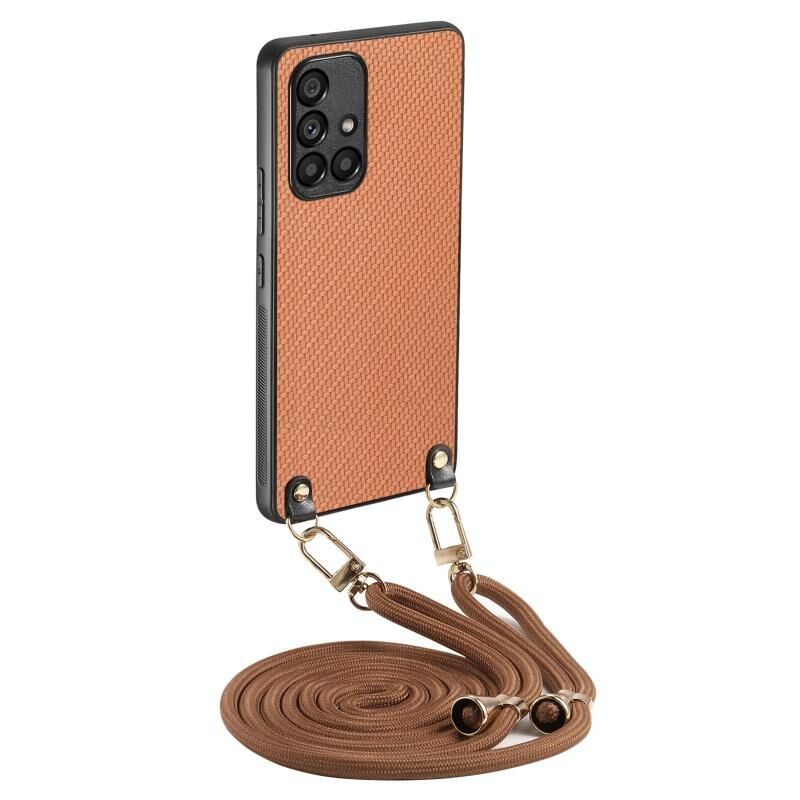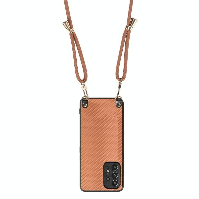 Για Samsung Galaxy A71 5G Carbon Fiber υφή δέρμα πίσω κάλυμμα υπόθεση τηλεφώνου με λουράκι σταυρού (καφέ)