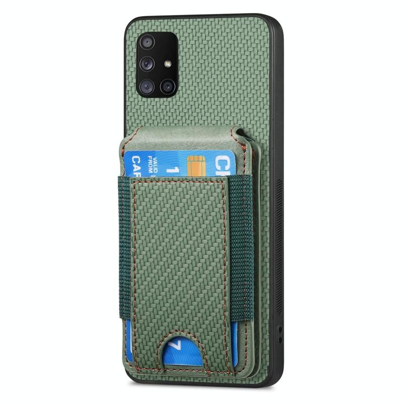 Για Samsung Galaxy A71 5G ινών άνθρακα 5G Κάθετη Flip Wallet Stand υπόθεση τηλεφώνου (πράσινο)