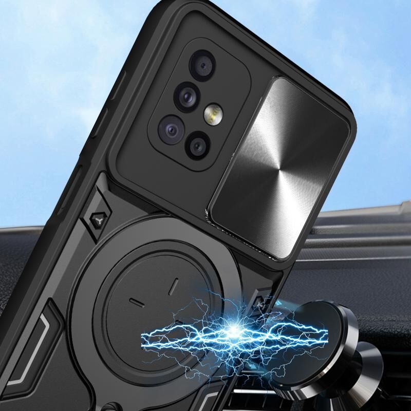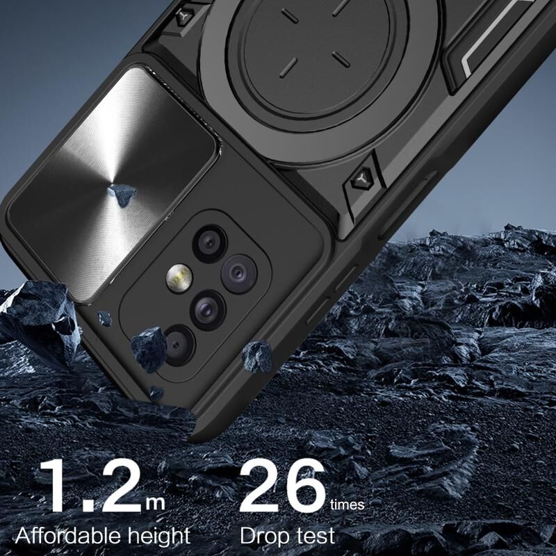 Θήκη κινητού τηλεφώνου για Samsung Galaxy A71 5G με υφή CD, συρόμενο προστατευτικό κάμερας και μαγνητική βάση (Ροζ)