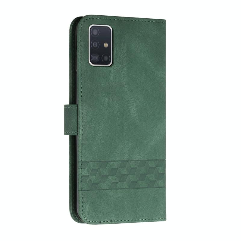For Samsung Galaxy A71 5G Cubic Skin Feel Flip Leather Phone Case(Dark Green)