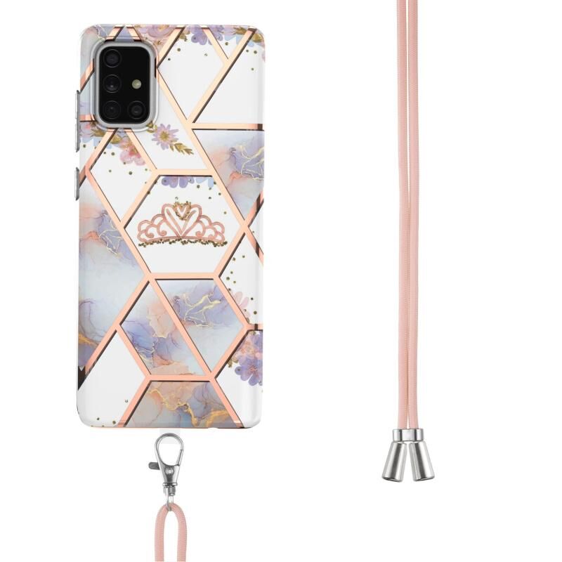 Θήκη προστασίας TPU με ενσωματωμένο κορδόνι (Imperial Crown) για Samsung Galaxy A71 5G, με γαλβανισμό, συνδυασμό χρωμάτων και σχέδιο μαρμάρου με λουλούδια, αντικραδασμική.