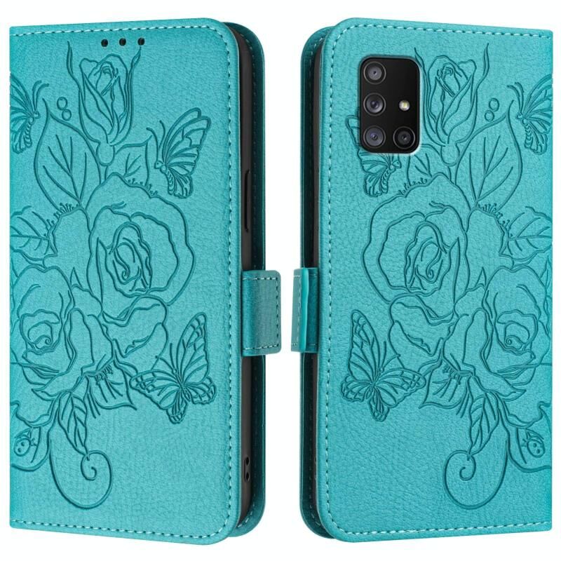 Για Samsung Galaxy A71 5G ανάγλυφο Rose RFID Anti-theft δερμάτινη θήκη τηλεφώνου (γαλάζιο)