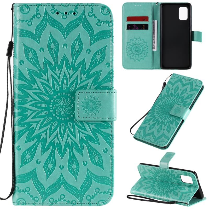 Για Samsung Galaxy A71 5G ανάγλυφο ηλιοτρόπιο μοτίβο οριζόντια Flip PU δέρμα υπόθεση με θήκη & υποδοχές για κάρτες & πορτοφόλι & κορδόνι (πράσινο)