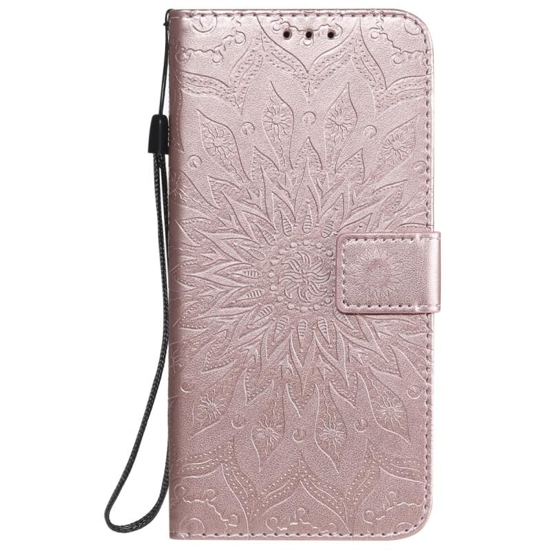 Για Samsung Galaxy A71 5G ανάγλυφο ηλιοτρόπιο μοτίβο οριζόντια Flip PU δέρμα υπόθεση με θήκη & υποδοχές για κάρτες & πορτοφόλι & κορδόνι (Rose Gold)