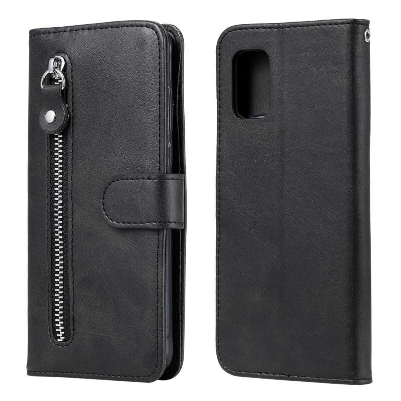 Για Samsung Galaxy A71 5G Μόδα μοσχάρι υφή φερμουάρ οριζόντια Flip δερμάτινη θήκη με θήκη & υποδοχές για κάρτες & πορτοφόλι (Μαύρο)