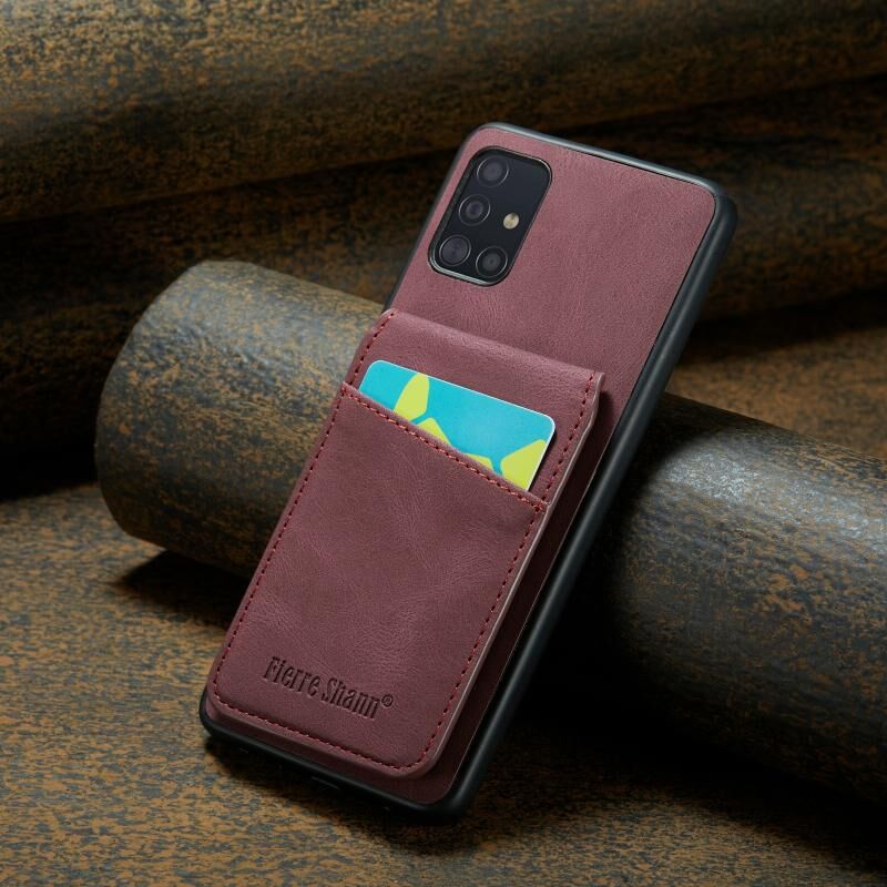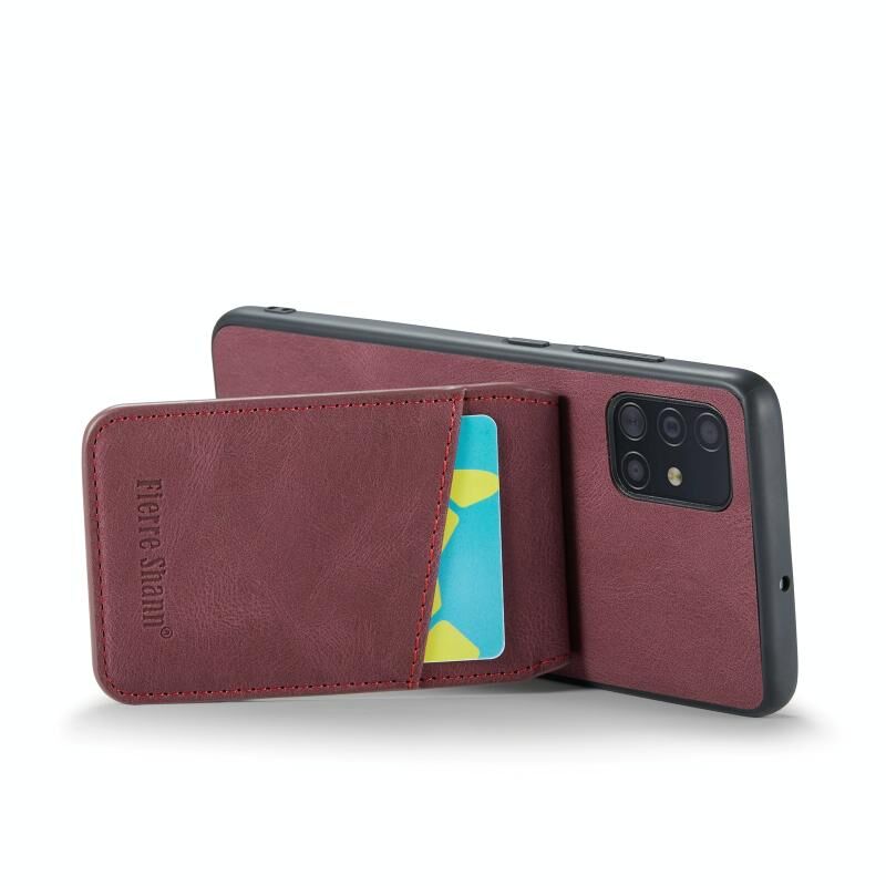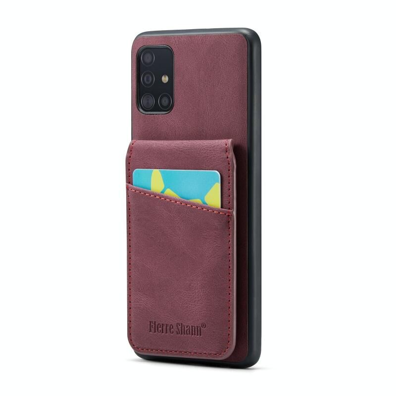 Για Samsung Galaxy A71 5G Fierre Shann Crazy Horse κάρτα κάτοχος κάτοχος πίσω κάλυμμα PU υπόθεση τηλεφώνου (κόκκινο κρασί) (FIERRE SHANN)