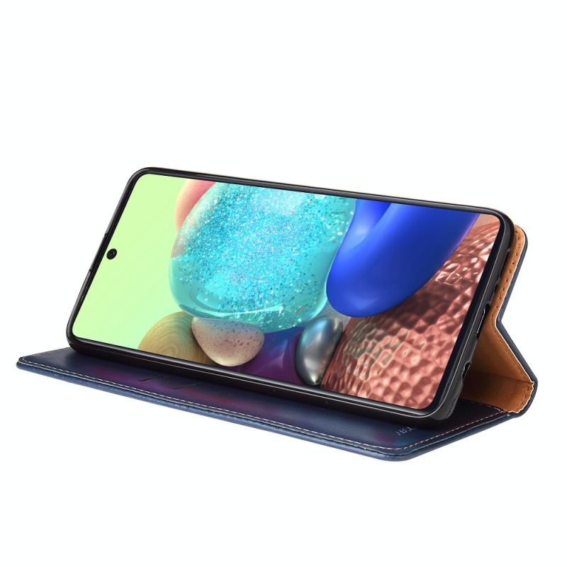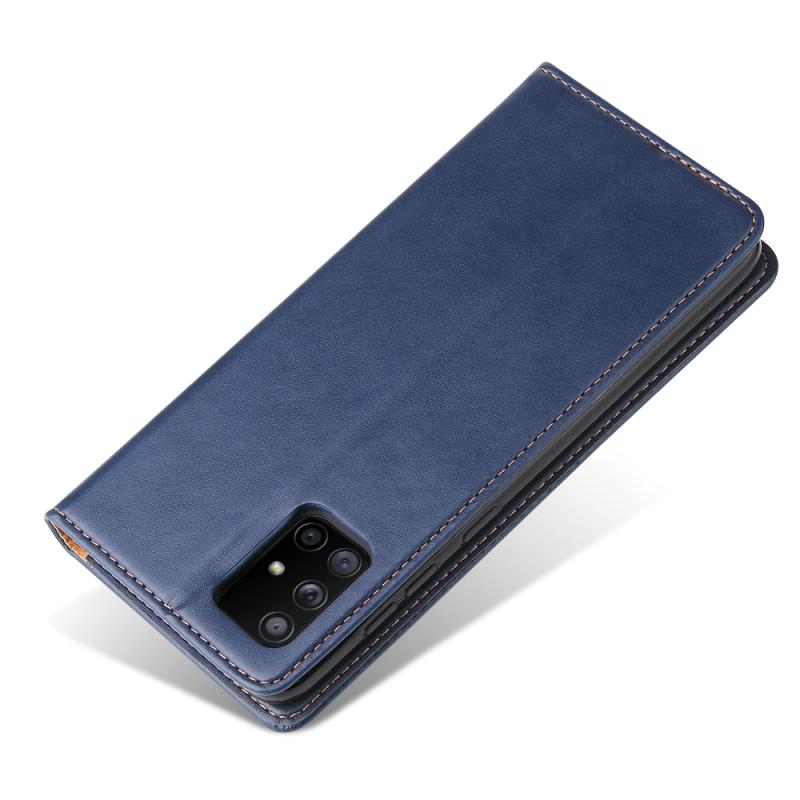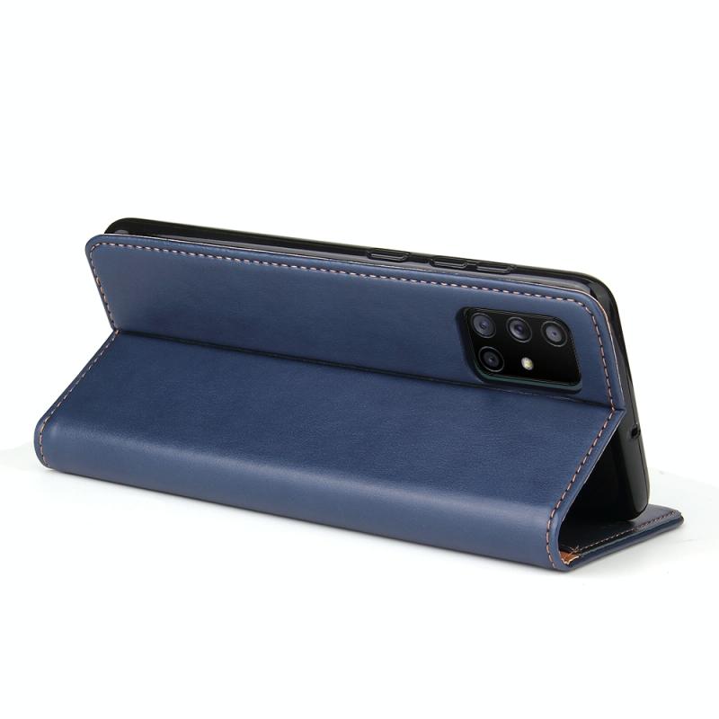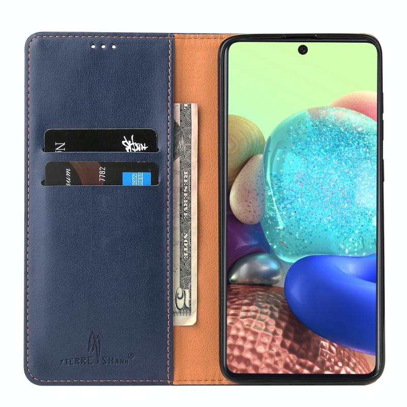 For Samsung Galaxy A71 5G Fierre Shann PU Genuine Leather Texture Horizontal Flip Leather Case with Holder & Card Slots & Wallet(Blue) (FIERRE SHANN)