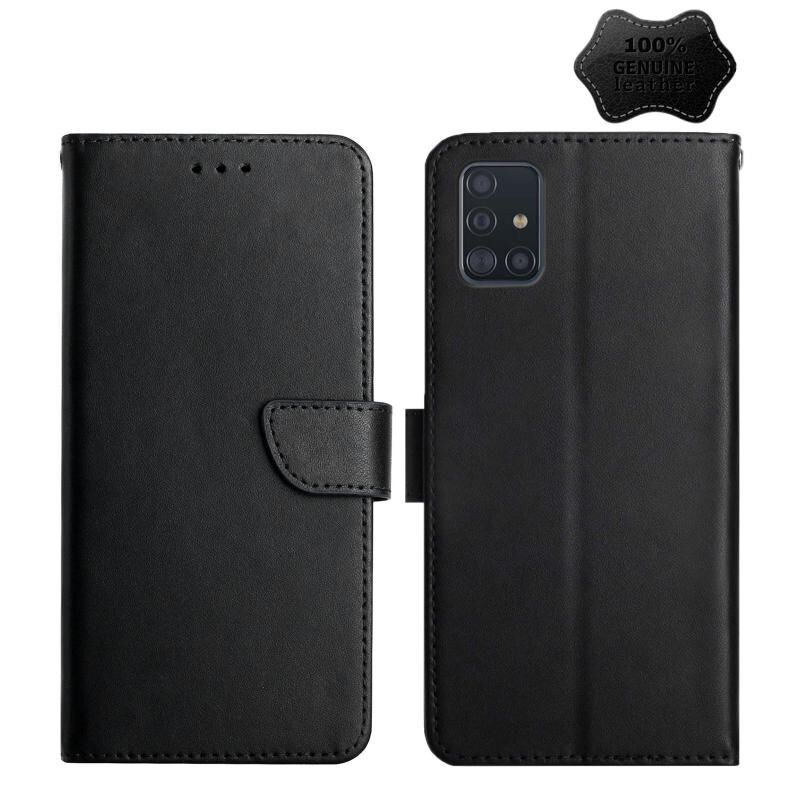 Θήκη τηλεφώνου οριζόντιας αναδίπλωσης από γνήσιο δέρμα για Samsung Galaxy A71 5G, ανθεκτική στα δακτυλικά αποτυπώματα (Μαύρο)