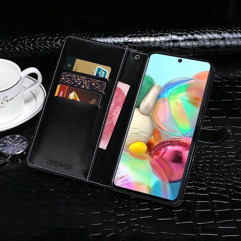 Για Samsung Galaxy A71 5G idewei Δερμάτινη θήκη οριζόντιας αναδίπλωσης με υφή κροκόδειλου με βάση & υποδοχές καρτών & πορτοφόλι (Μαύρο) (idewei)